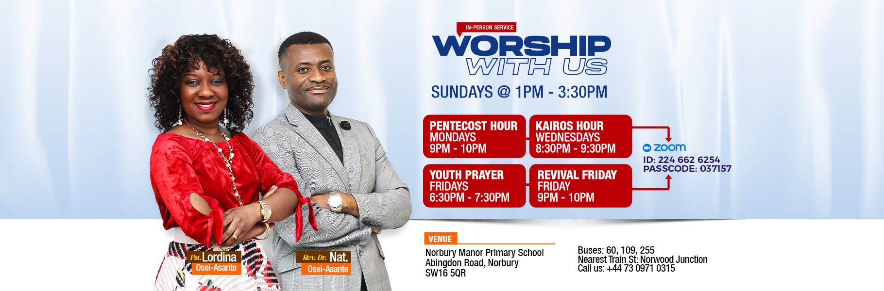 Word Pastures embodies a mission-hearted approach to ministry. The dedicated Intercessory team meets virtually via Zoom every Monday (9.00pm – 10pm). The wider church meets for virtual services on Wednesdays (8.30pm-9.30pm) and Fridays (9.00PM – 10:00 PM) with the Youth also meeting on Fridays (6.30pm- 7.30pm) all via Zoom and gathers in person on Sundays (1:00 PM – 3:30 PM) at Norbury Manor Primary School. Abingdon Road, London SW16 5QR